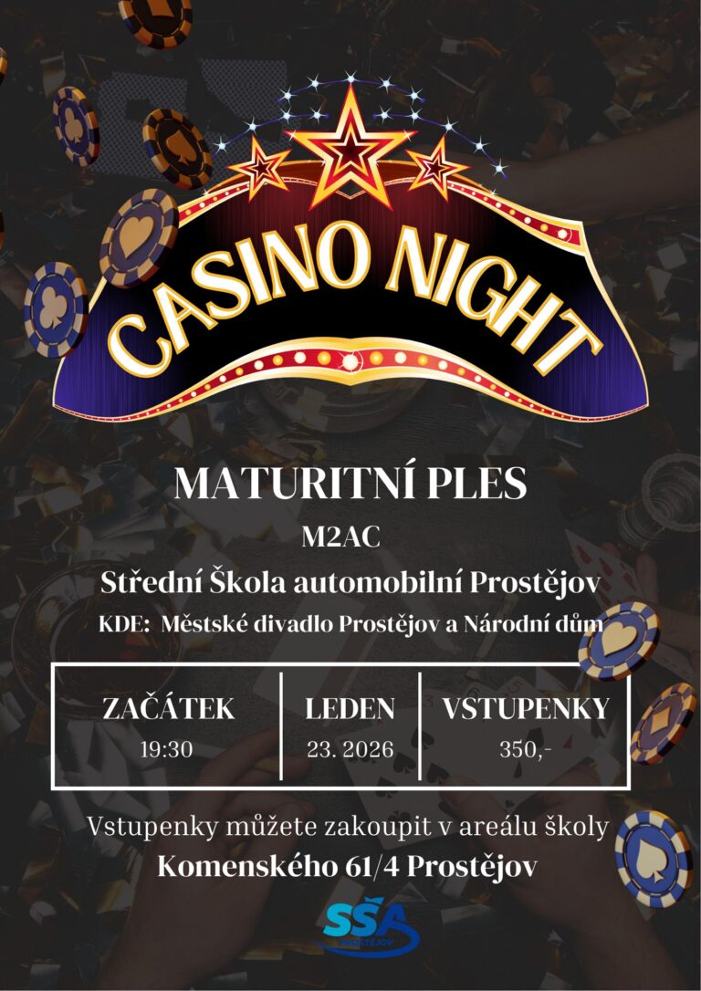 Maturitní ples se bude dne 23.1.2026 od 19:30 v Městském divadle a národním dome Prostějov.
